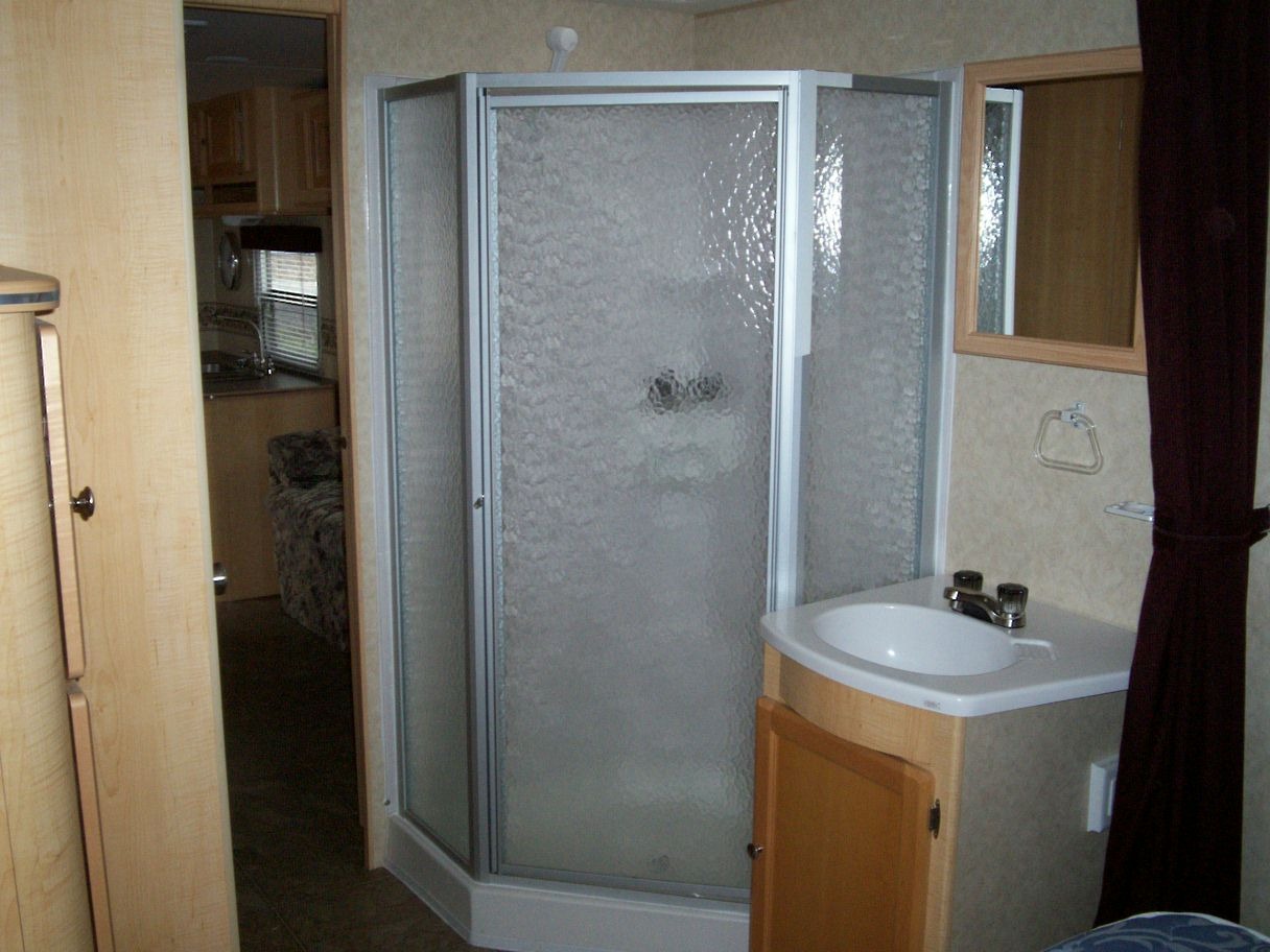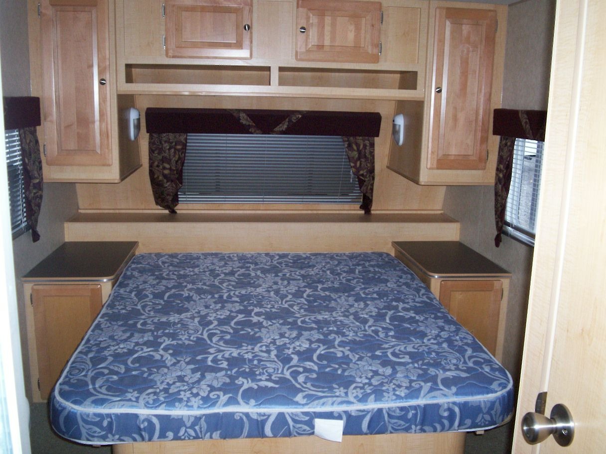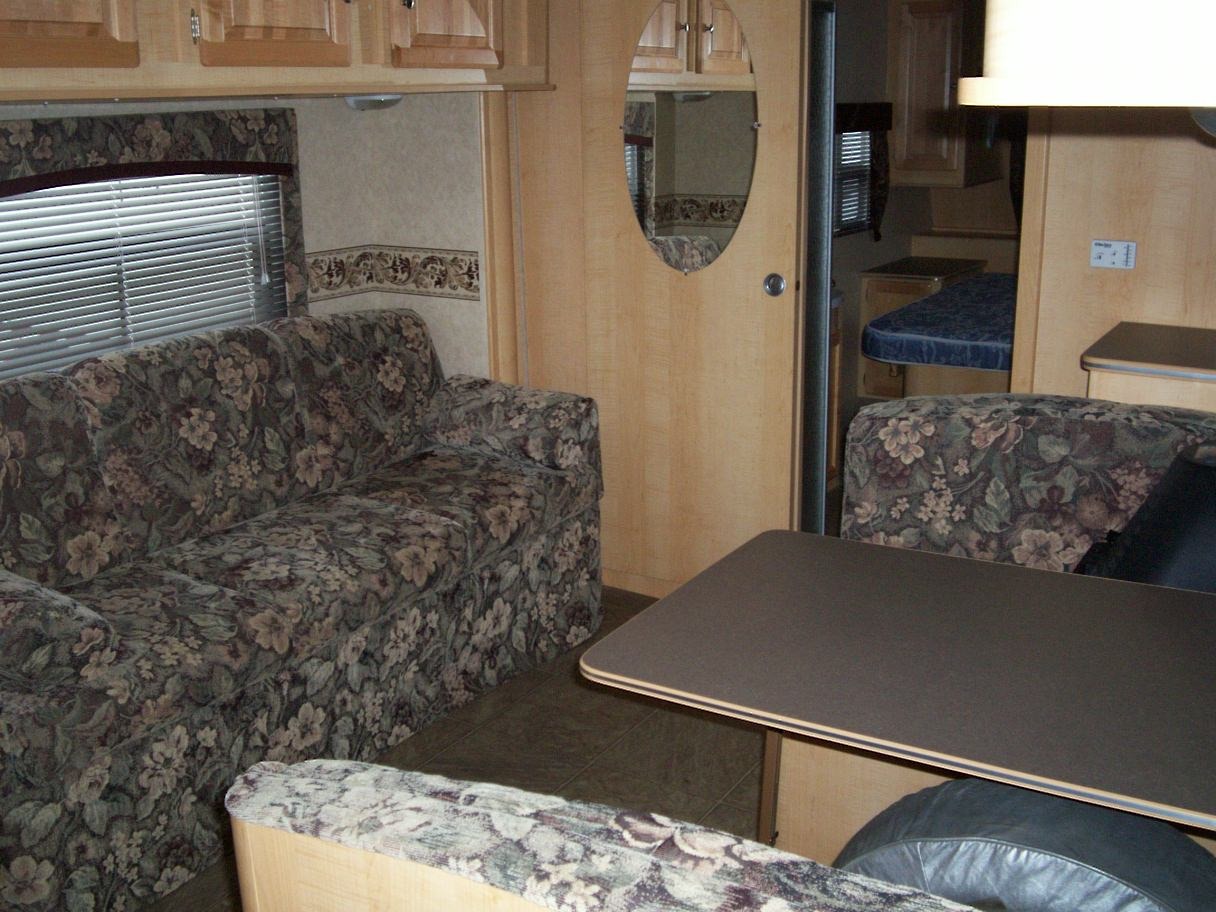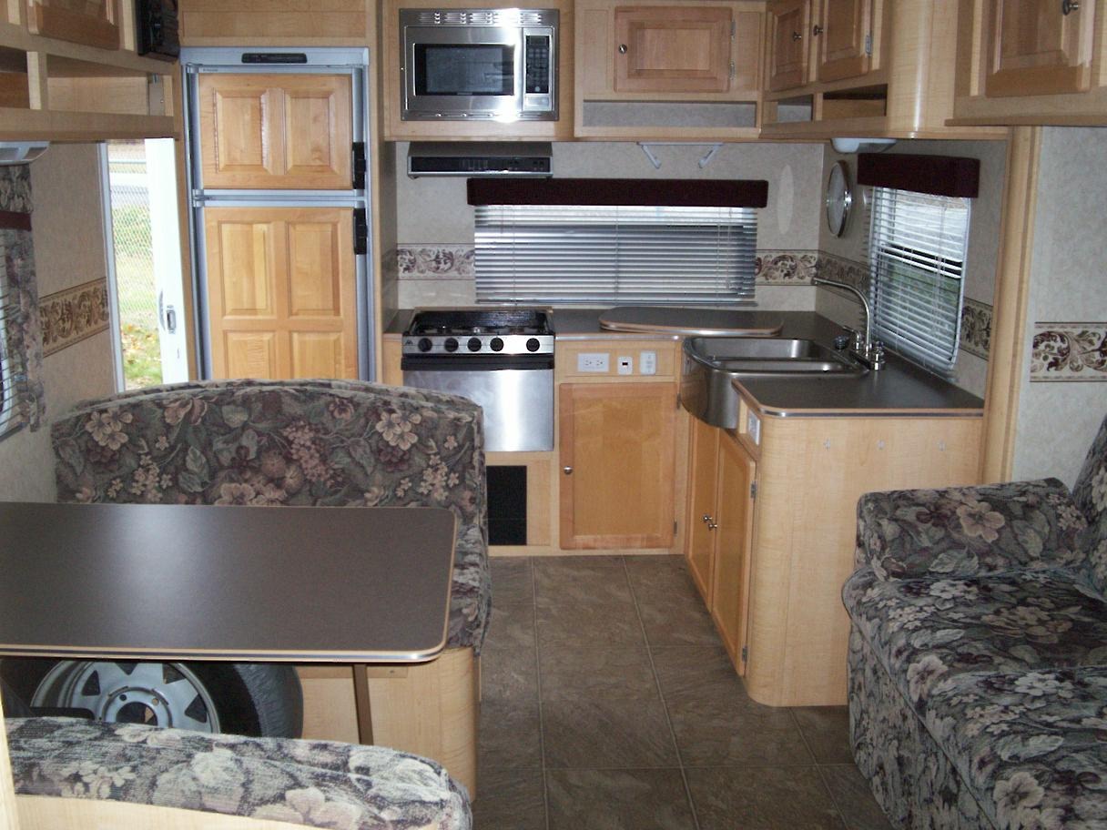 This R-Vision Traillite model has a Gaucho slideout and can sleep up to 6 weighing in at approx 4,657 lb. It comes very well equipped including rear stabilizer legs, awning, Air Conditioner, twin 30lb propane tanks, Dometic fridge, 3 burner propane stove w/oven, microwave, water heater w/bypass, and water pump w/bypass.